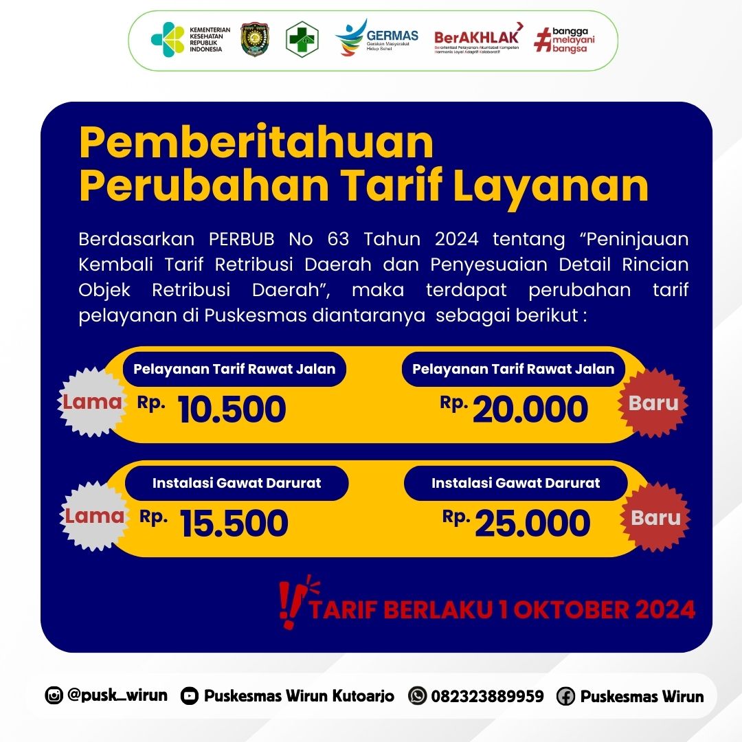PERUBAHAN TARIF LAYANAN PUSKESMAS WIRUN KUTOARJO